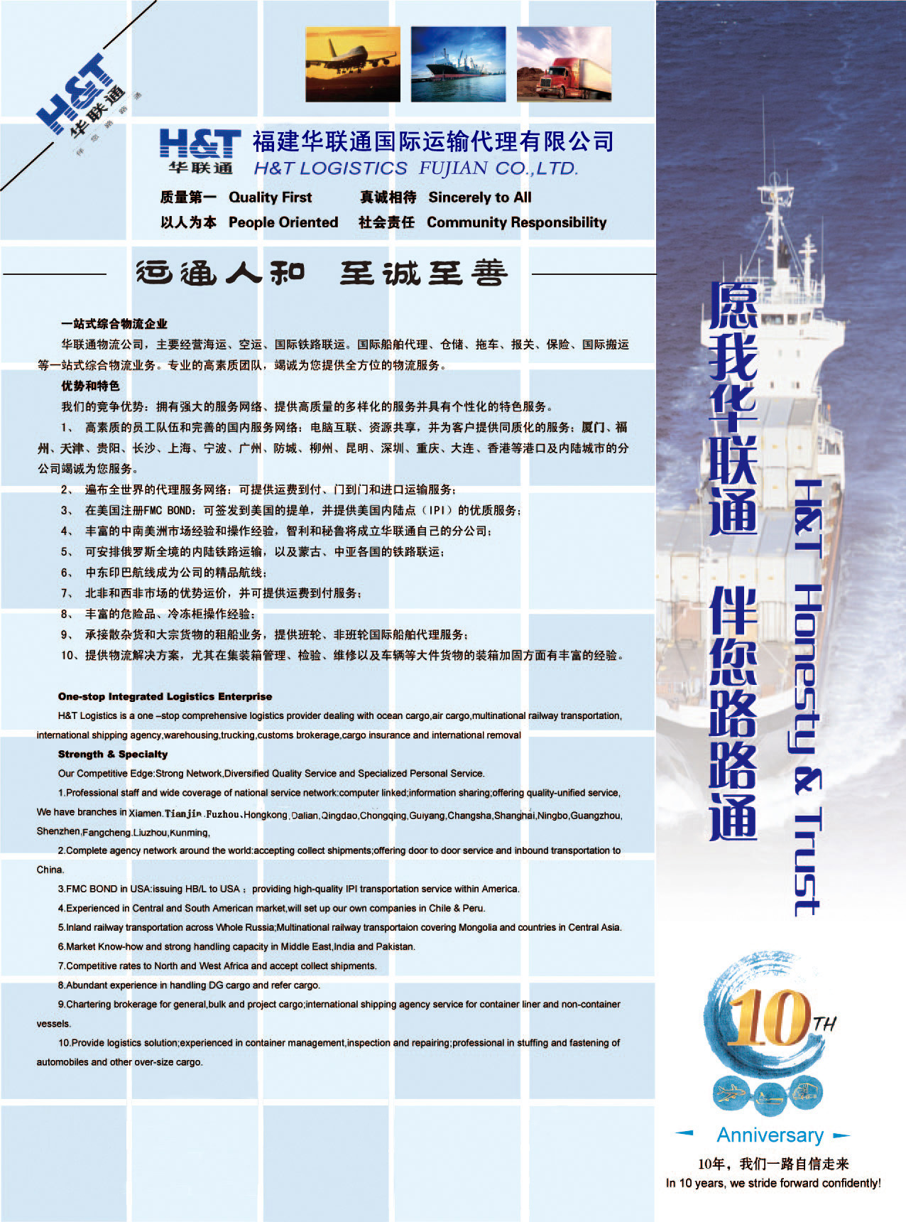 主营业务:台湾到大陆海运,大陆到台湾空运,大陆到台湾海运,